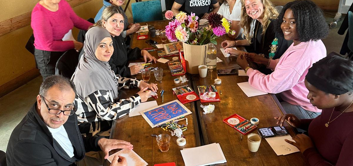 Geen lange intro's of uitleg. Maar handen uit de mouwen en meteen beginnen. Tussen lezingen of een lesprogramma is het een verademing om even iets te doen, te maken en met elkaar te praten.
